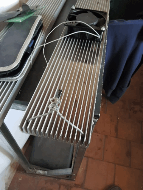 El disipador de 75cm de largo x 12cm de ancho x 3.5cm de alto es el mínimo recomendable, con lo cual si conseguís uno aún más grande… mejor.