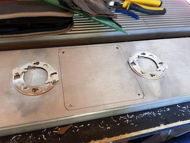 Si ya tenemos los lentes colimadores, también marcamos y hacemos los huecos, sino cuando nos lleguen tendremos que desarmar la lámpara para poder agregarlos.