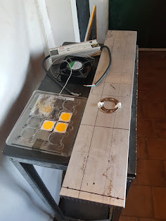 Vamos a marcar y realizar también los huecos para el cooler, para el driver y para pasar los cables de un led a otro. como lo vemos en la foto.
