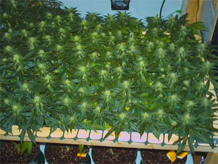 El SOG es una técnica, en la que cosecharemos muchas plantas pequeñas a la vez en lugar de pocas planas mas grandes. Para esto dividiremos nuestro indoor en 2 partes aisladas lumínicamente. Un área permanecerá en un fotoperíodo de 12 horas de luz y 12 de oscuridad para floración constante y el otro área estará siempre en 18 horas de luz y 6 de oscuridad, donde tendremos nuestras germinaciones, madres y esquejes, con mas humedad. Con esta configuración obtendremos pequeñas cosechas una vez al mes aprox.