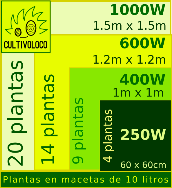Cada lámpara nos ofrece un tipo de cobertura, es decir un espacio en el que va a proyectar una luz efectiva para cultivar.